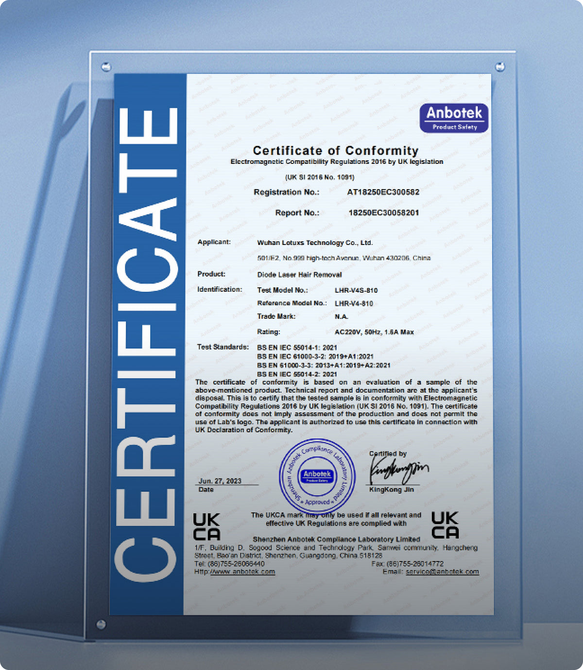 Our devices have undergone rigorous international certification and testing. Please verify the FDA, UKCA, and CE information here: CERTIFICATION, where product descriptions include terms like "diode" and "laser."
