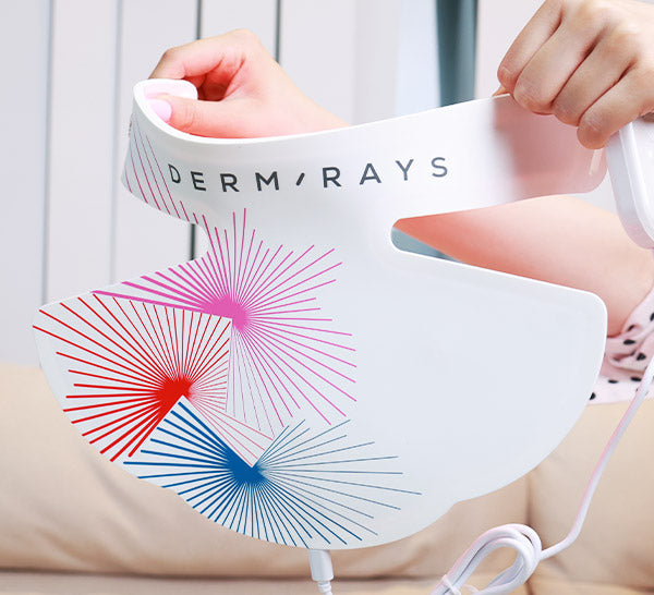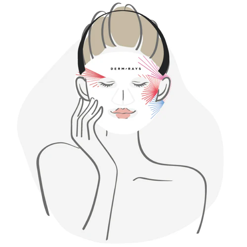 DermRays LED mask works by emitting specific wavelengths of light, including red, infrared, and blue light. Each wavelength penetrates the skin at different depths and targets various skin concerns: