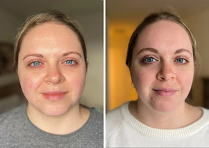 Skin appears firmer and more balanced. Jawline and eye area look more lifted, with a healthier overall complexion.