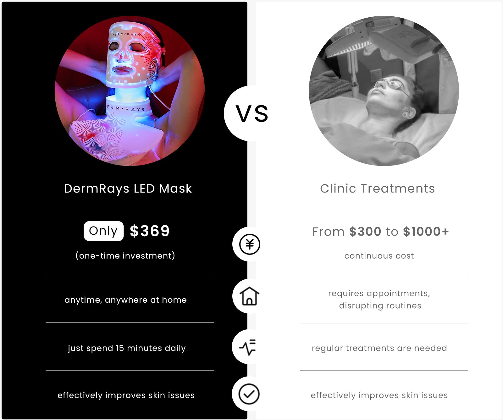 Yes, DermRays LED mask is safe for all skin types. Here's how each light wavelength benefits your skin: