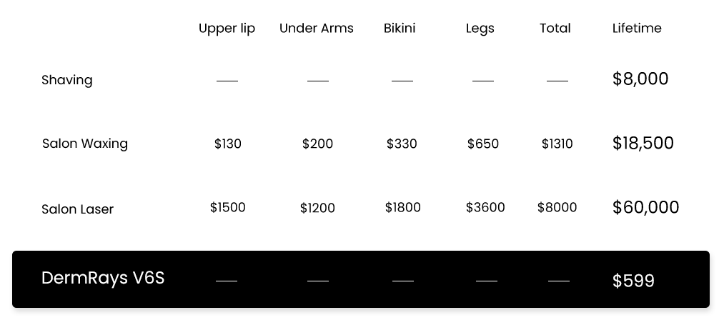 The DermRays V6S boasts an energy density of up to 7 J/cm², making it more powerful than any popular IPL device. Our advanced 1064nm laser is primarily absorbed by the melanin in the hair root, ensuring that every pulse is utilized to its full 100% hair removal effectiveness.