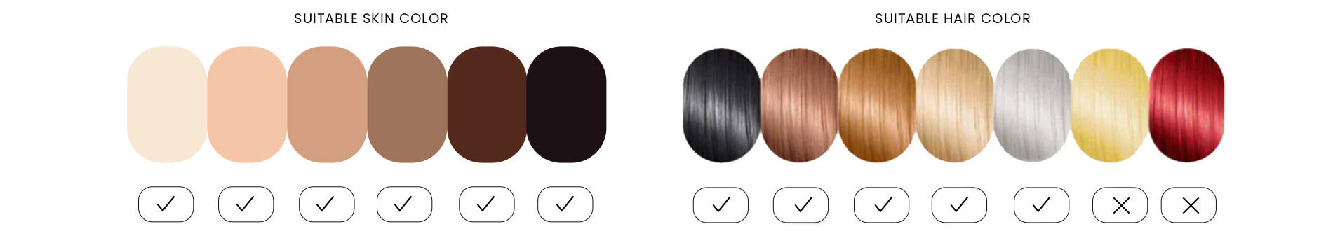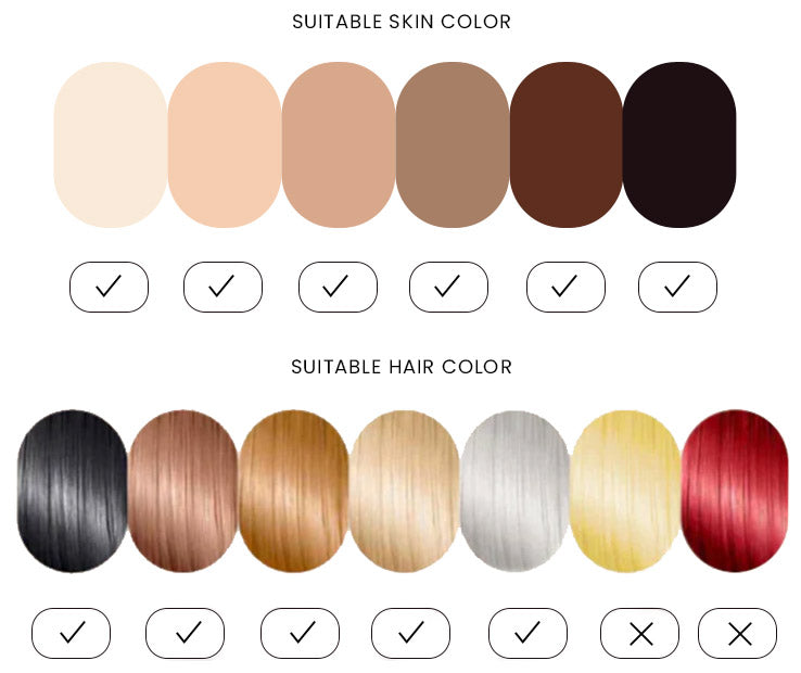 *Included in the box, each device comes with a User Manual containing a skin and hair color chart. Additionally, you can find it on our website. Compare and confirm whether your skin tone aligns with the specified color range.