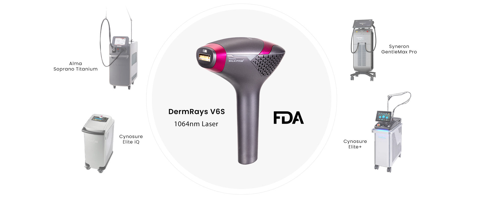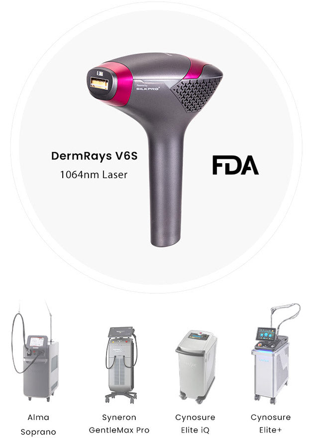 DermRays V6S uses a 1064nm wavelength that bypasses surface melanin and penetrates deep to target hair follicles directly.